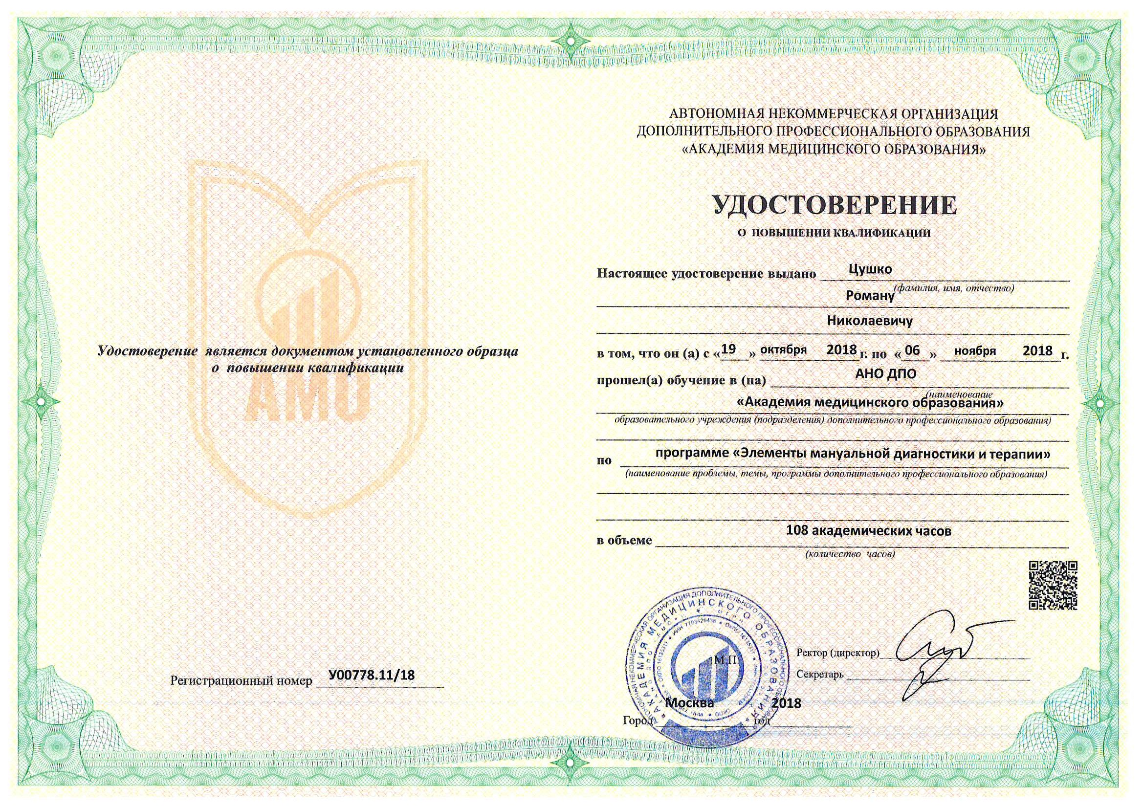 К Вашим услугам Цушко Роман Николаевич - квалифицированный специалист, со стажем более 20 лет.